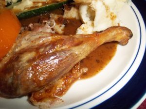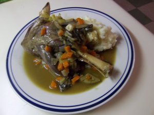 Here is a recipe of mine that I cook on a regular basis these days. I love lamb, but it is a wee bit pricey over here in the States compared to Britain, so to cook it here regularly, I go for the cheapest available cut – the shank. When I think of famous British lamb dishes, it is one that springs straight to mind, and yet, it is missed out of Jane Grigson’s English Food. (For those of you not in the know: I am trying to cook every recipe in the aforesaid tome – this link – and part of this blog’s job is to fill in the gaps.) At some point, I shall write a blog post about lamb and mutton in general with a list of British dishes – I will be aiming to add every recipe for those dishes too.