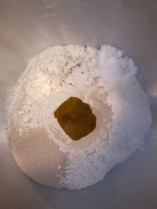 If using dried yeast, make a well in the flour adding the salt to one side of the bowl and the yeast on the other side. Pour the warm water into the well along with the butter or oil.