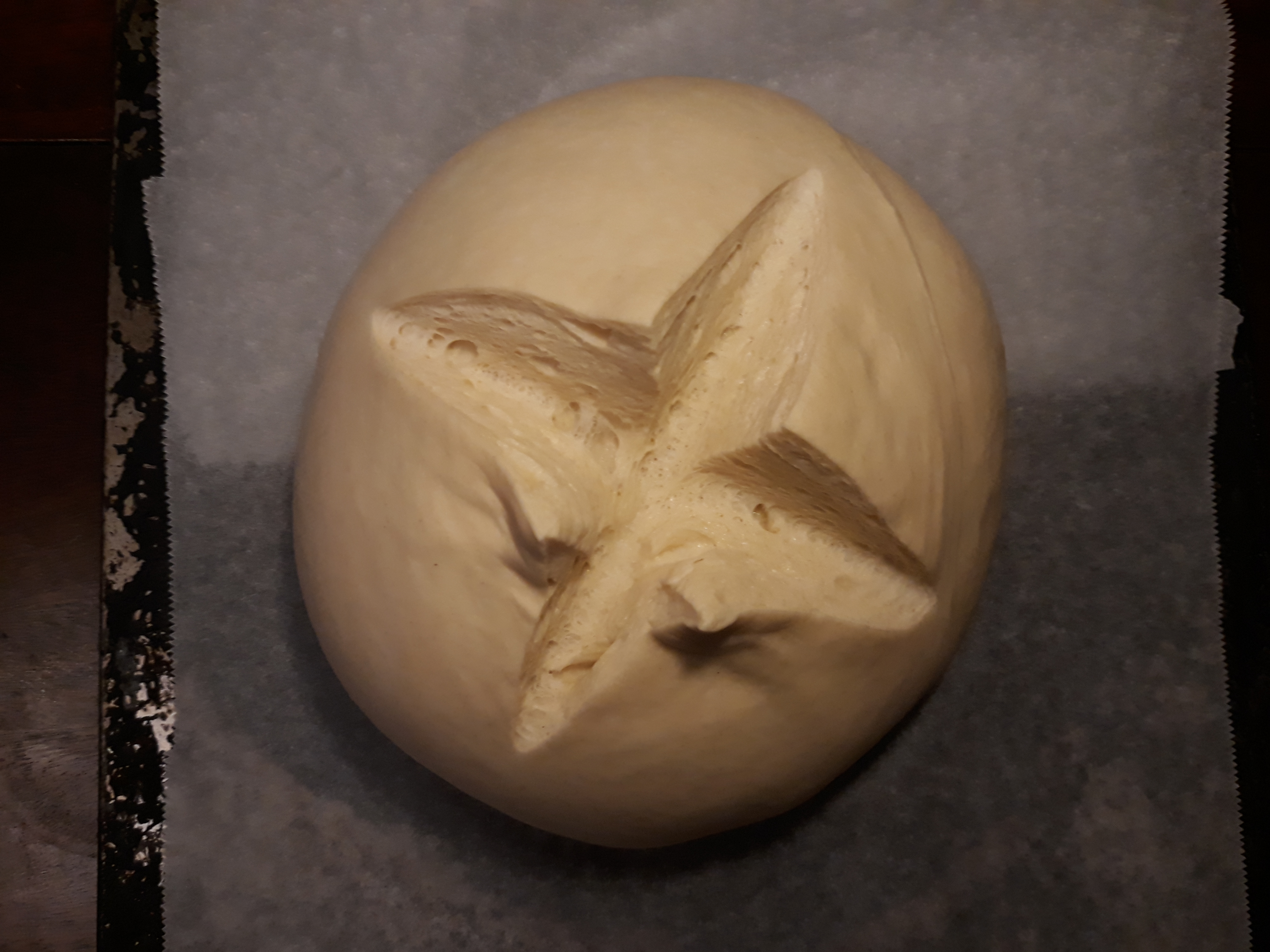 I see I’m way late on the comments here, came here from your post today on the Cottage loaf. Anyway, I have a 10″ chef’s knife that I keep really sharp for cutting vegetables, etc., and I use that when cutting the cross on a Coburg loaf, or even an Irish soda bread. Woks really well!