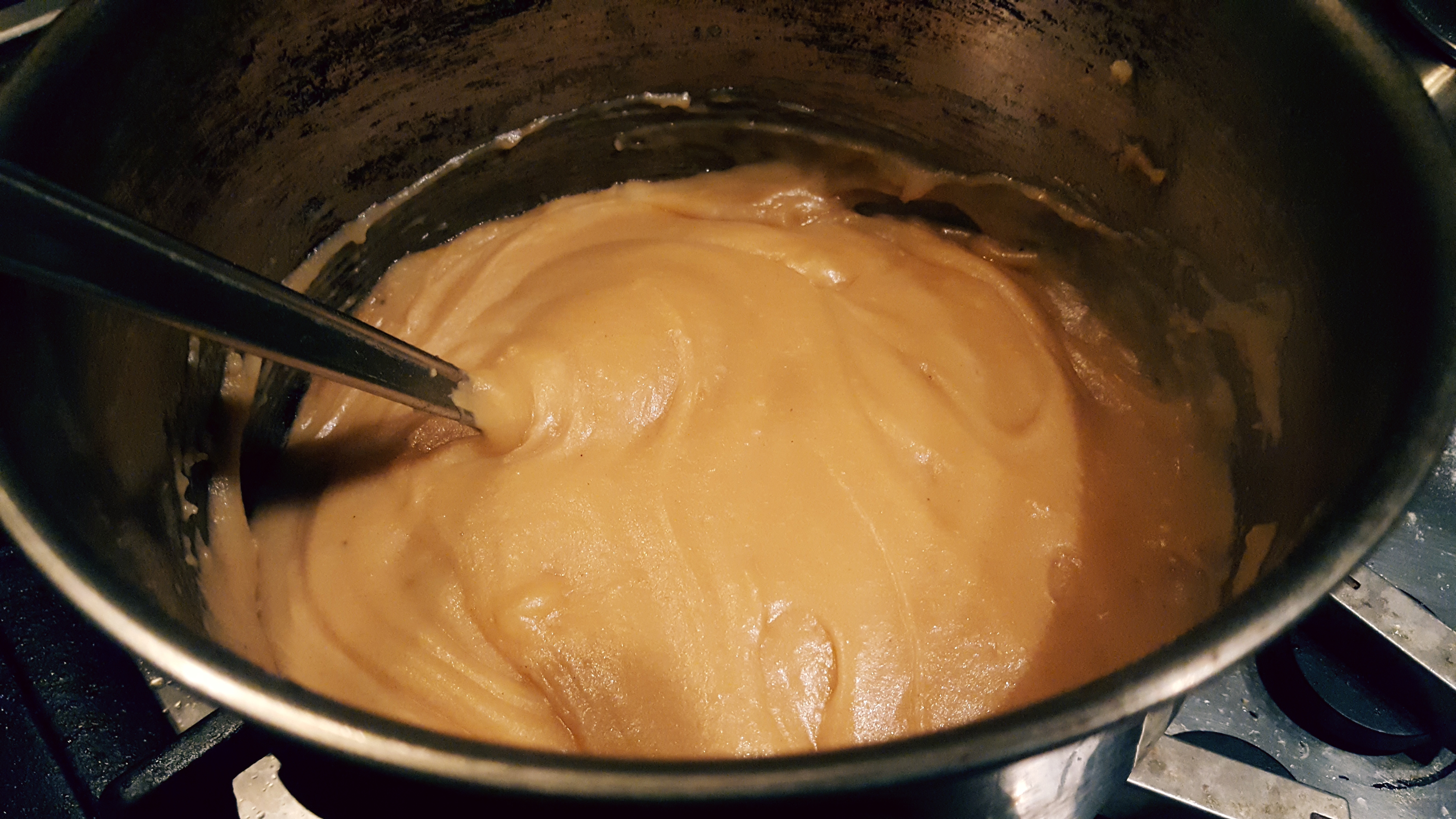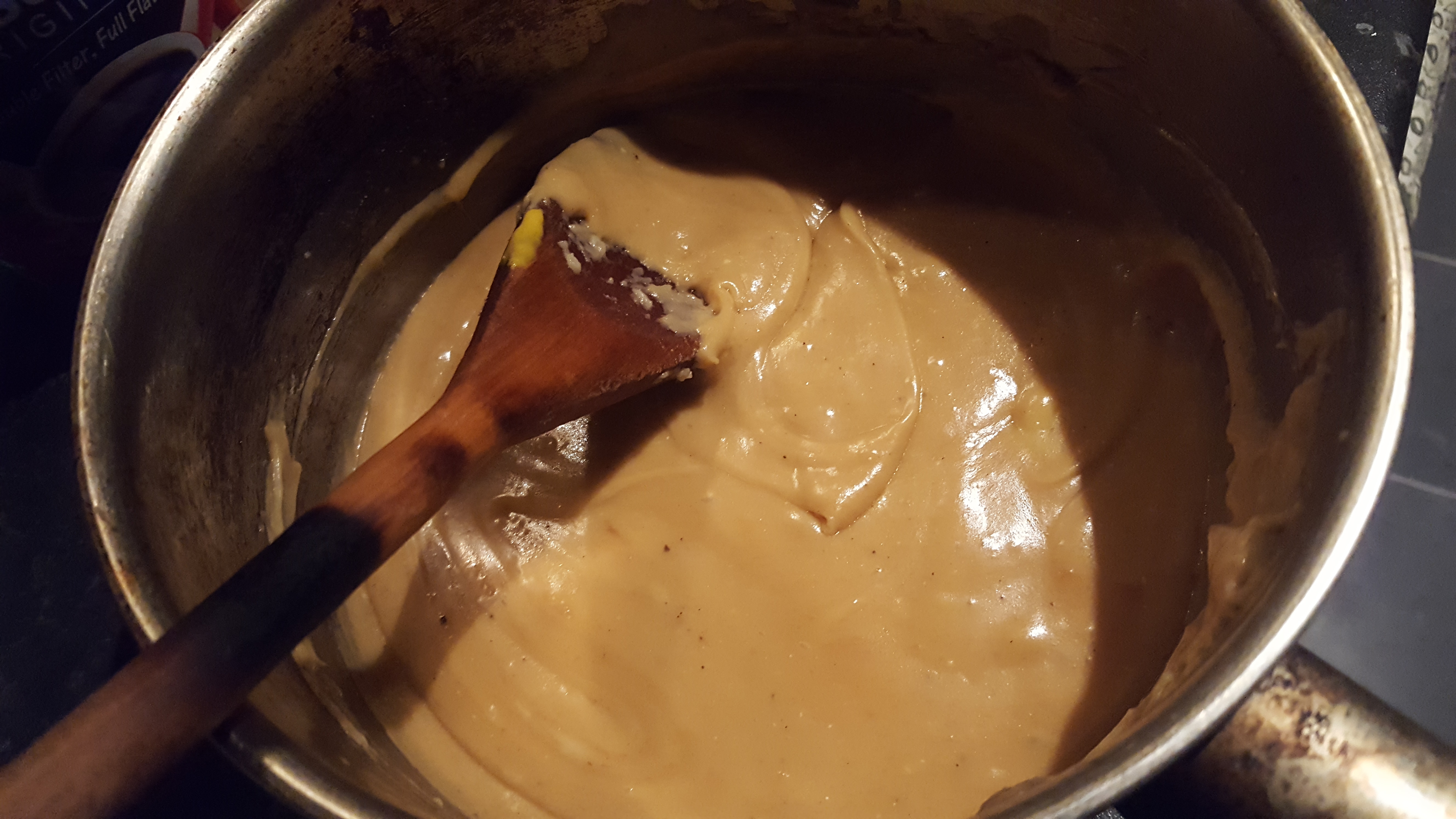 Melt the butter in a saucepan and stir in the flour to make a roux. Cook for 3 or 4 minutes, stirring occasionally until the roux goes a pale brown colour.