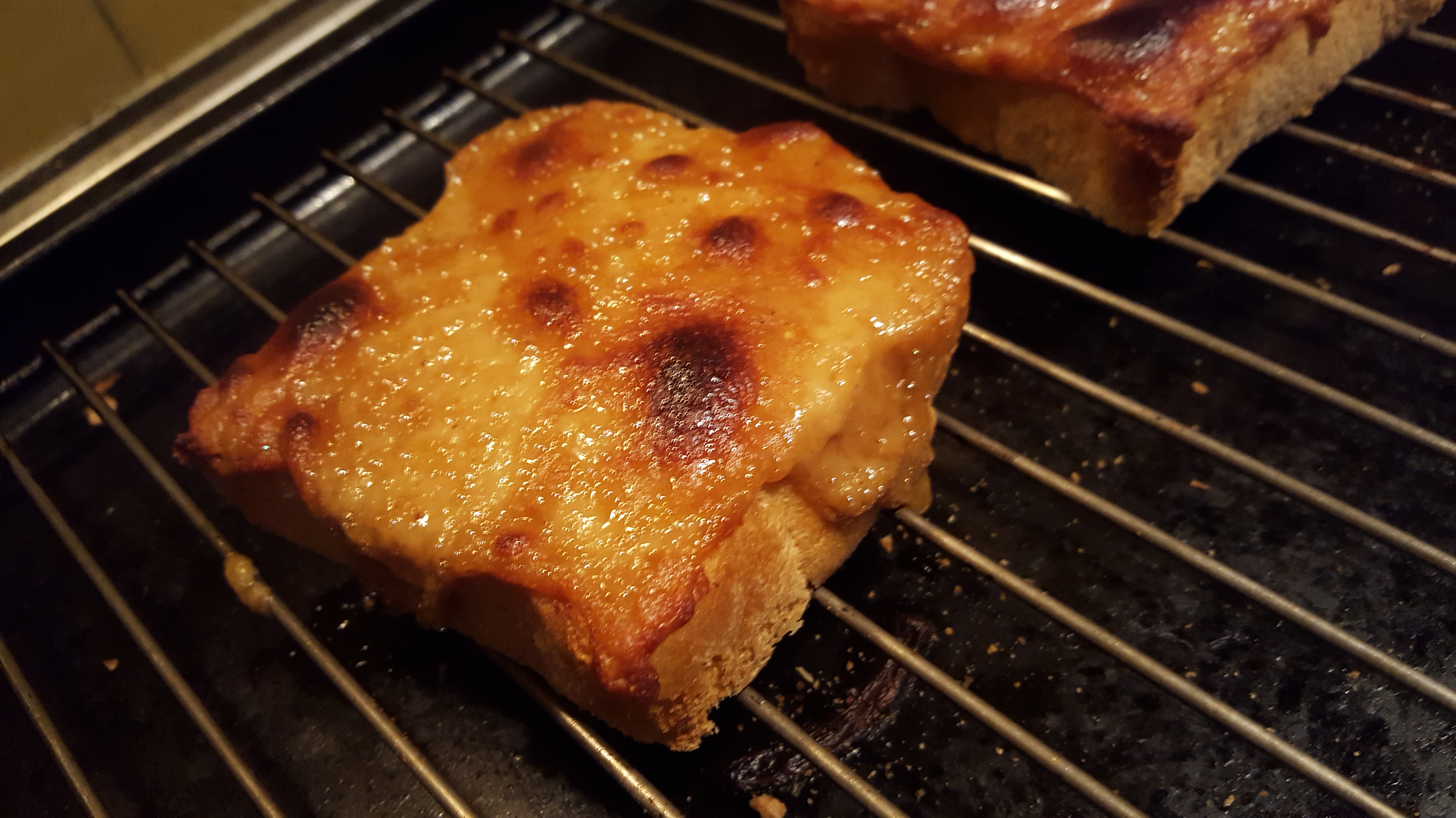 Make your toast and spread, or mould, on the rarebit mixture. Make sure the mixture covers the whole of the slice, right to the edges. Place under a hot grill and toast until bubbling and the colour of a deep golden brown.