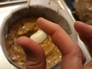 Pour into the cake tin, pop in the king/queen bean, level off the top and bake for an hour. Cool in the tin.