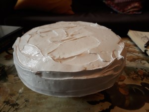 I don’t decorate my cakes elaborately, preferring as thin a layer of icing as possible, so I use half a batch of royal icing, but if it is your thing, you might want to make a little more!