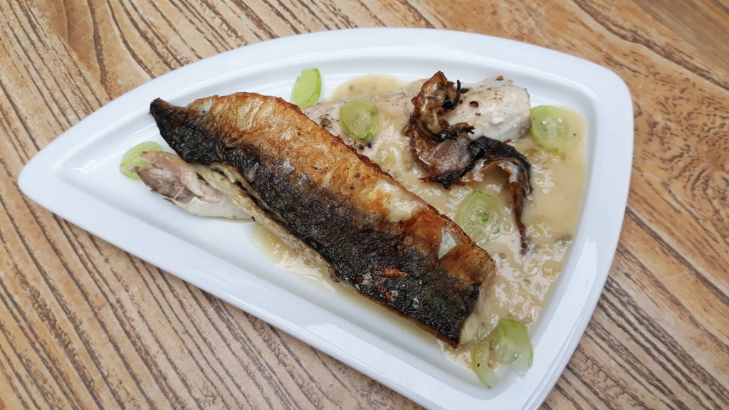 mackerel or herring, and the fact it isn’t cooked means the gooseberries retain