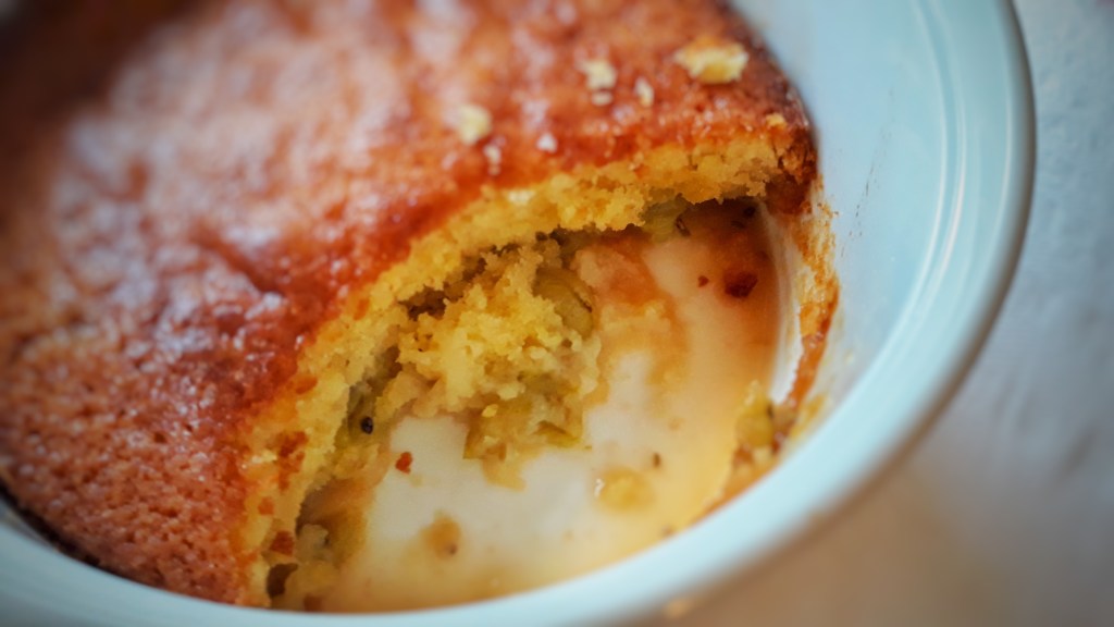 pudding – stewed cooking apples covered in sponge cake. I suspect this would work