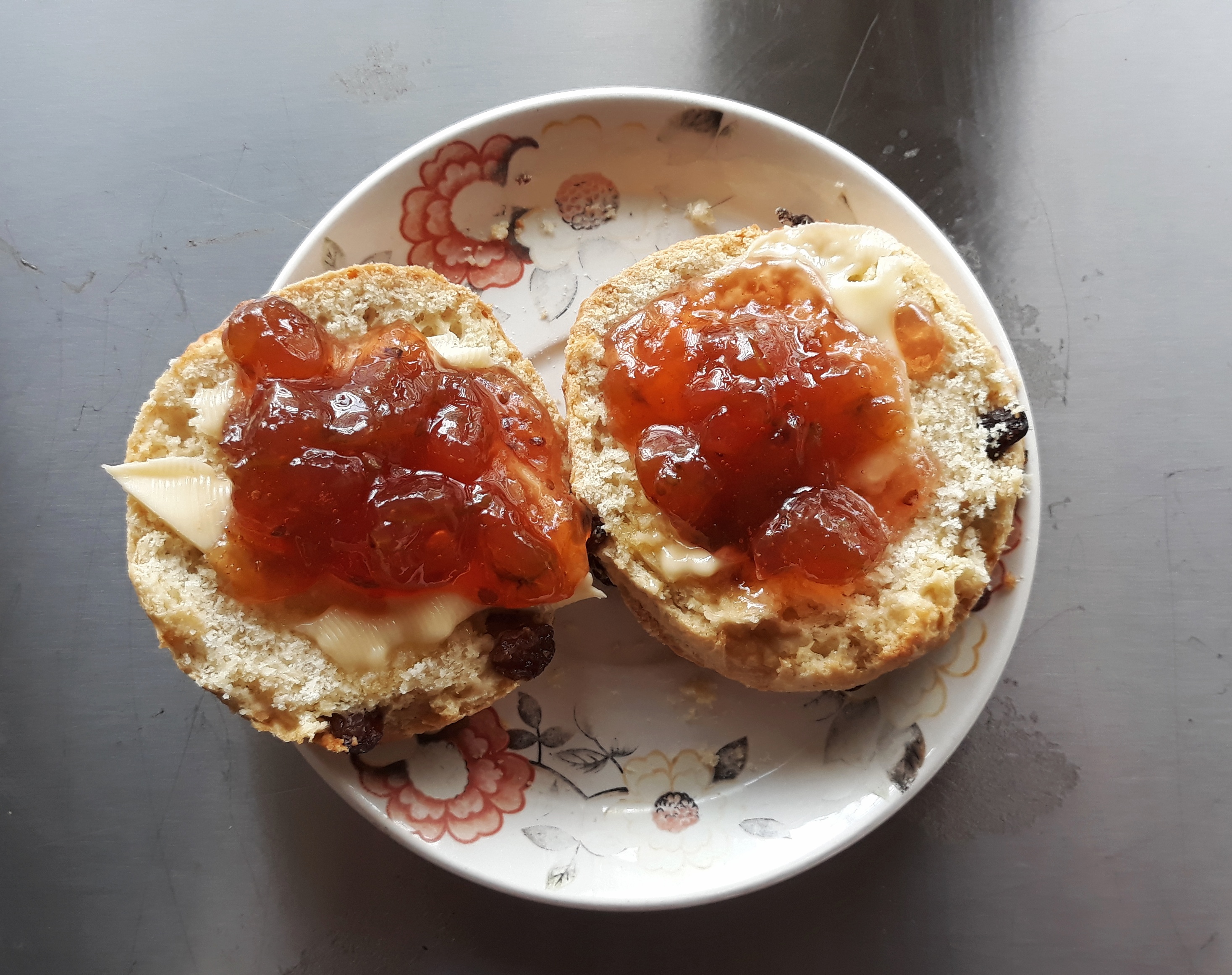 Stir occasionally and when all of the sugar has dissolved, turn the heat up to bring the gooseberries to a really good boil. After around 15 minutes – by now they should have a pinkish tinge about them – test to see if you have got a set. Either take the jam’s temperature with a temperature probe and see if it is 105°C, or take a teaspoon of the mixture and place a few drops on your very cold saucer you had stored in the fridge, let it cool for a minute and see if the drops wrinkle when you push them with a finger.
