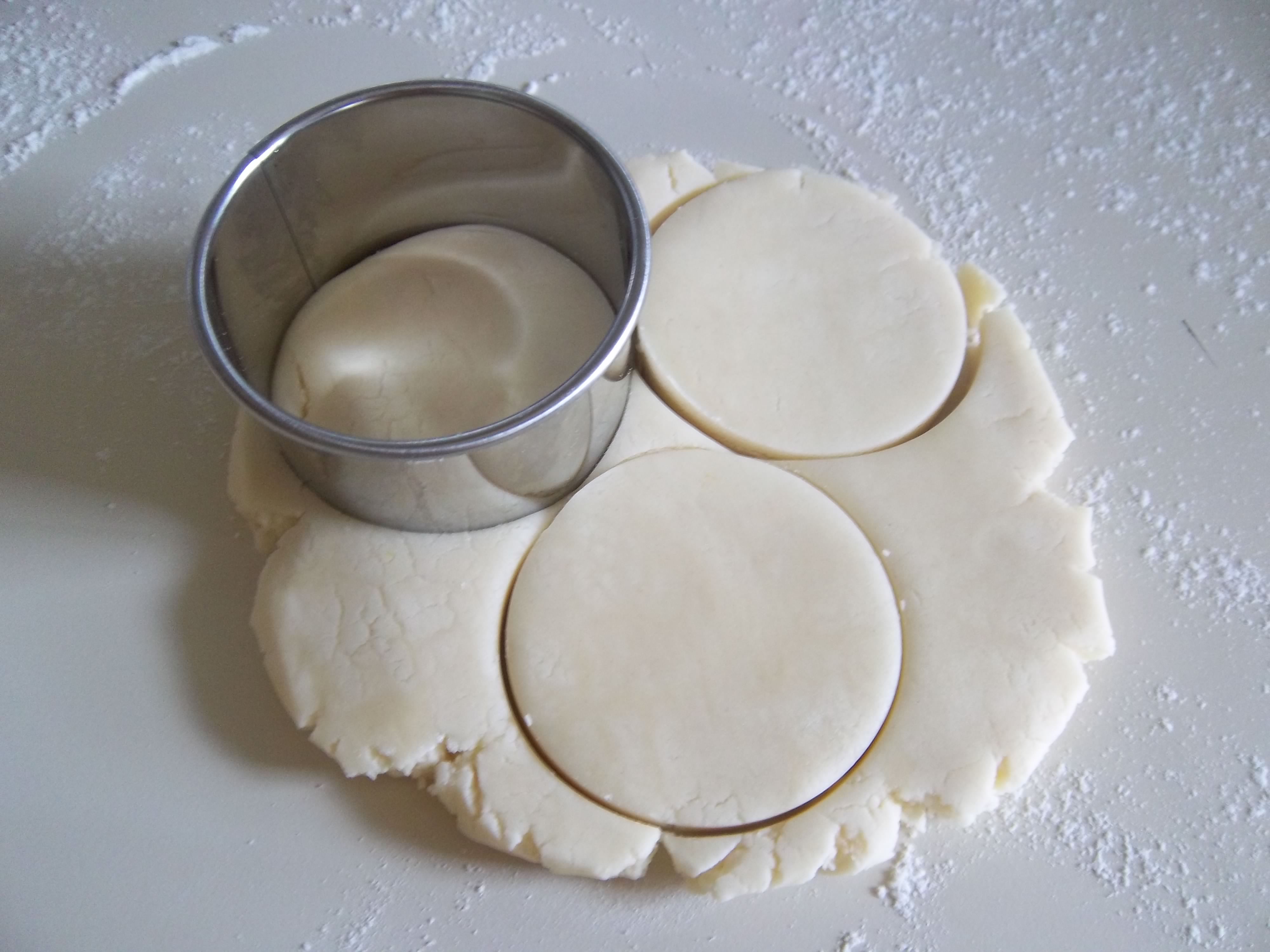 For biscuits you can really do whatever you like; thick, thin, round, square. I think a little under half an inch is a good thickness. Cut out the biscuits and make your all-so-important fork marks.