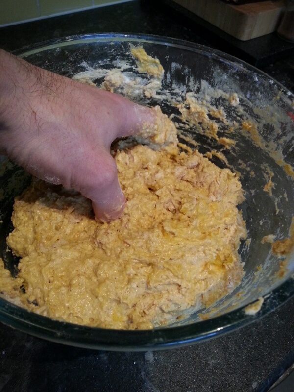 I found a patch of Passion dock growing in the Cheshire town of Lymm last year, but they were far too old and tough to pick, but I remembered this year. Oddly, I couldn’t find any nettles, but I did spot some sorrel and some wild garlic. I was in a bit of a rush, and didn’t have enough to make the very green sort of pudding, but I didn’t want to boil one (to save on fuel), so tried a common trick of cooking it in a saucepan, pouring and setting it in a tub so I could slice and fry it. This method is sometimes used for other savoury puddings such as black pudding or mealy pudding.