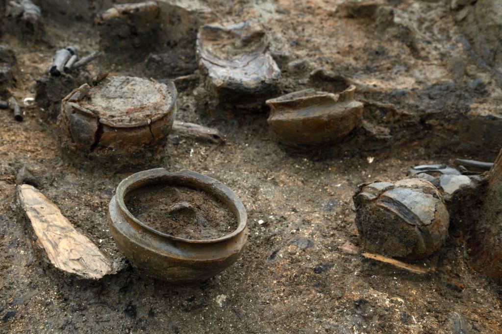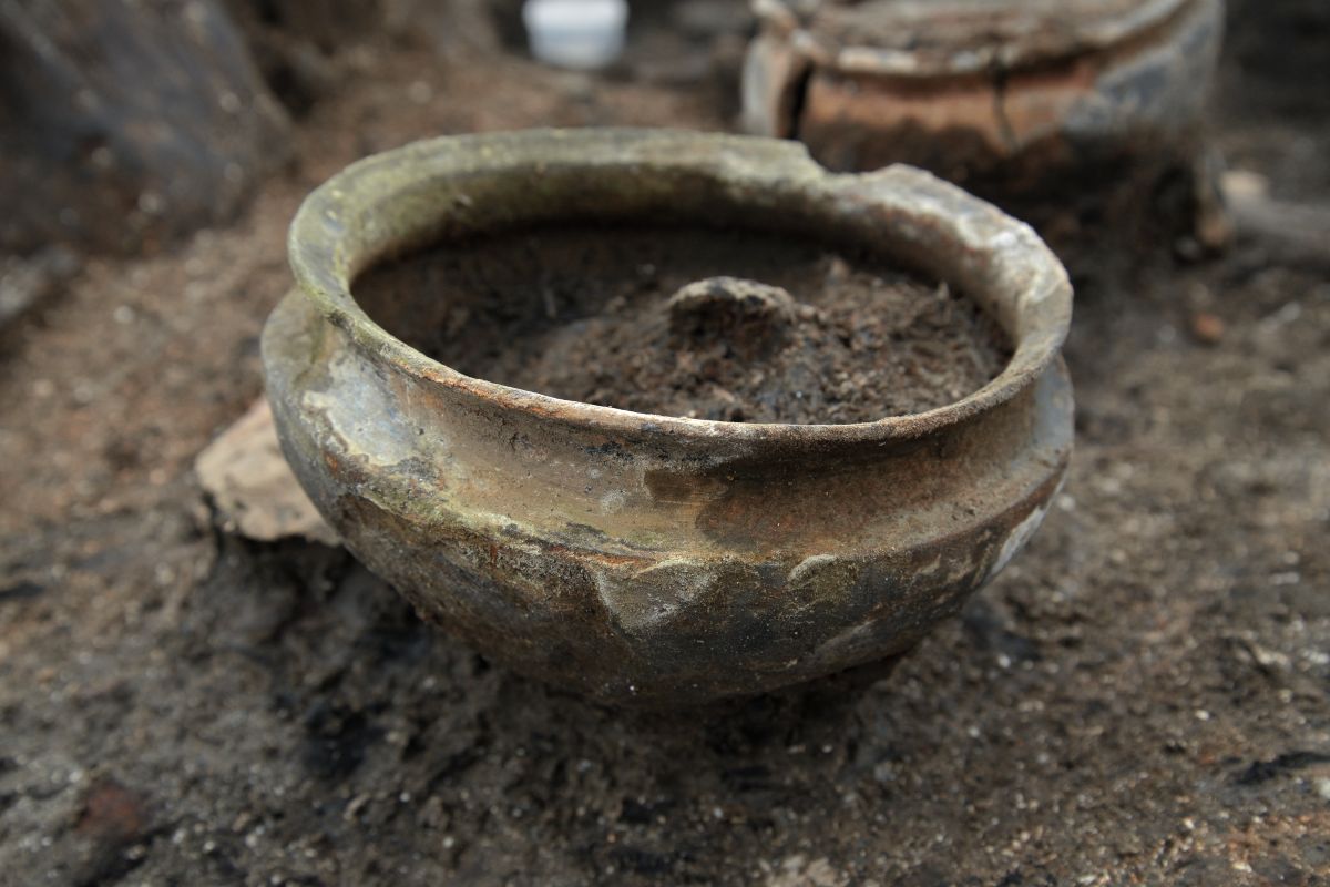 Area of potsExcavation and scaffoldExcavating the site Arial view of excavationPot in situA tiny pot!The tiny pot in situStacked potsSome images of the excavation and finds (all images by Cambridge Archaeological Unit)