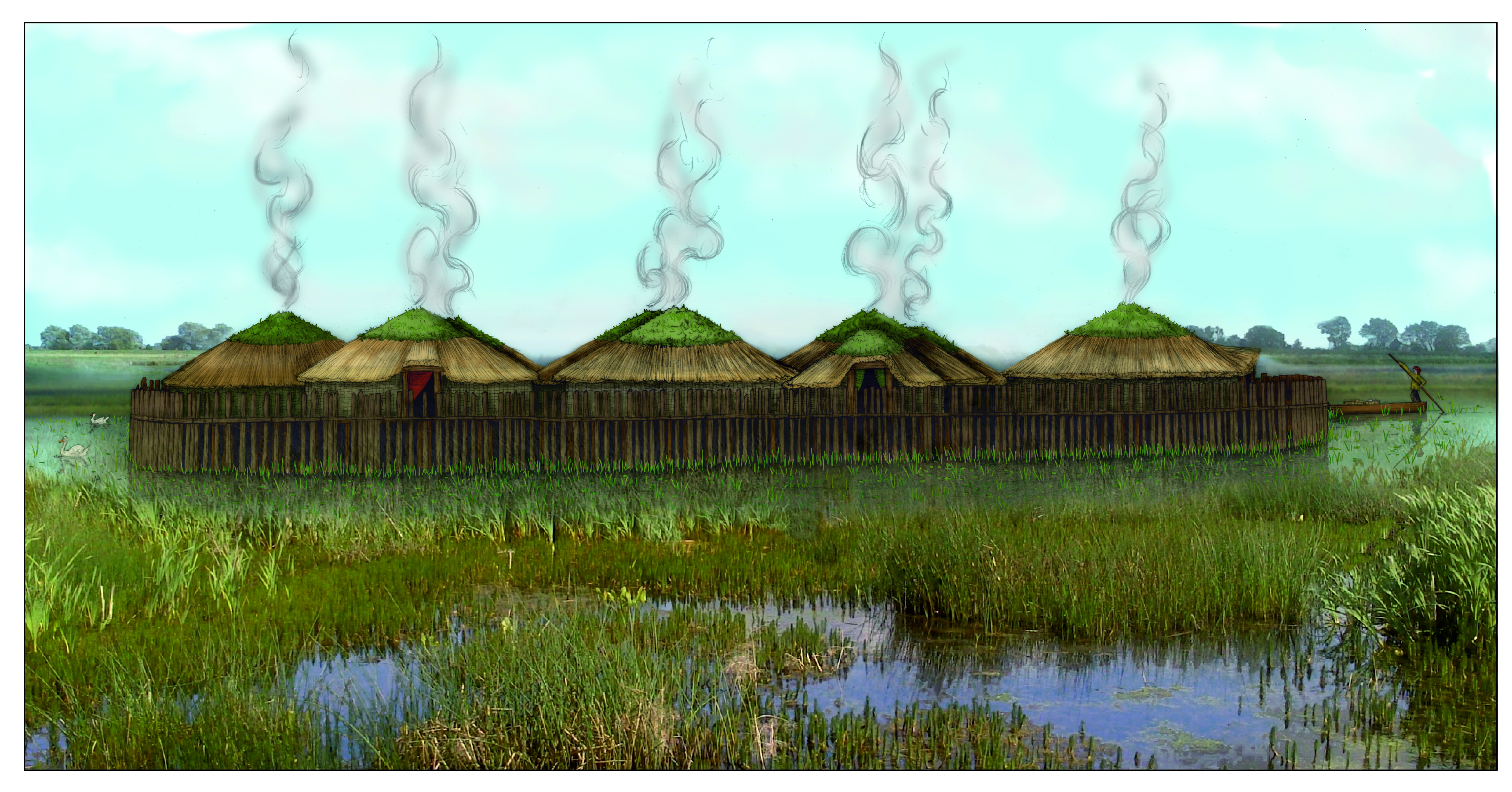 A Must Farm side-view reconstruction (pic: Cambridge Archaeological Unit using a foreground photographic image supplied by S. Craythorne/Lincolnshire Wildlife Trust)