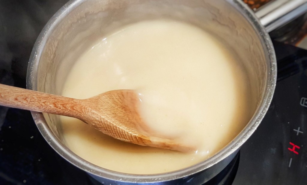 For the porridge or flummery, leave the sowans to settle for 1 or 2 days, pour away the liquid, reserving it to use like buttermilk in another recipe. Don’t worry if there is a small layer of liquid remaining. Give it a good stir and pour into a saucepan; you should have around 150 ml of sediment. Add double the volume of water, plus the sugar and salt, and cook over a medium setting, stirring all the time until the sowans thickens – it will soon become very thick and glossy. If it seems too thick, add a little more water. It should be ready in 7 or 8 minutes.