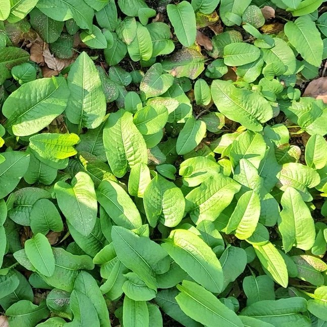 Dock pudding used to be very popular in Yorkshire, especially in the Calder Valley, West Yorkshire. The dock in question isn’t the common dock (the one you rub on nettle stings) but a particular species that goes under several names including bistort, passion dock and sweet dock, its Latin name is Polygonum bistorta.[1] It can be distinguished from the common dock by its yellowish spear-shaped leaves. The leaves are collected when young, alongside tender nettle tops, there is a recipe for it in Alexis Soyer’s classic 19th century work A Shilling Cookery For the People, where it is made with a mix of two-thirds passion dock, and one-third nettles.[2] These were supplemented or replaced with whatever greens were around: sorrel, raspberry leaves, chives, spinach, etc, the choice changing with the season. These are washed, sliced and cooked with onion or leek and oatmeal to make a very dark green porridge, which is fried in dollops in bacon fat, lard or beef dripping.[3] It has been likened to Welsh laverbread in colour and flavour, in that you will either love it or hate it.[4] It sometimes goes by the name herb pudding, which makes sense seeing as docks are only eaten in the springtime when they are tender. It is mixed with more oatmeal and water, tied in a cloth and boiled, cooled and fried in slices.