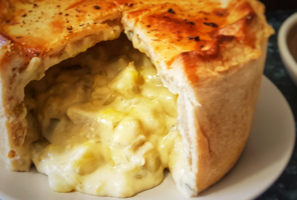 First, rub the butter into the flour until it resembles breadcrumbs. Put the lard in a saucepan and pour the hot water over it. Heat gently, but be careful – you don’t want it to boil and splutter. Stir in the icing sugar and when it is dissolved, make a well in the centre of the flour-butter mixture and pour into it three-quarters of the hot liquid. Cut the liquid in with a knife, then pour the remaining hot liquid to pour over any dry patches that remain. Once all of the water has been added, give the pastry a knead (leave it to cool a little if you need to). It should be smooth, pliable and waxy. Cover with cling film and allow to cool completely, but do not refrigerate.