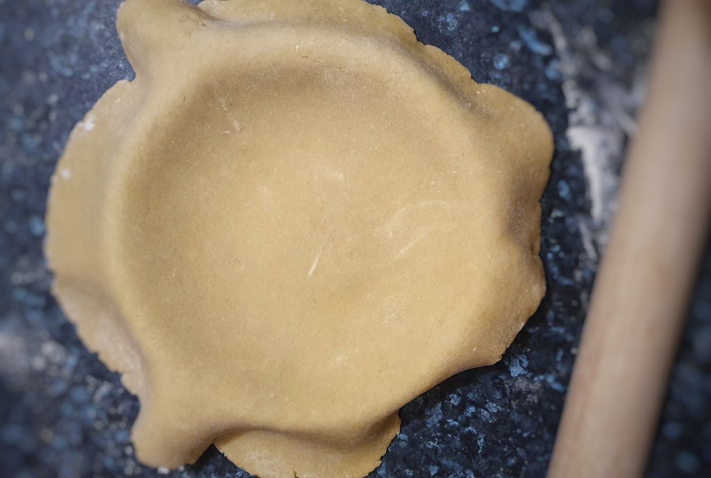 First, make the pastry: Place the flour and fat(s) in a mixing bowl and rub the fat in until the mixture resembles fresh breadcrumbs. You can do this by hand using fingertips or with the flat beater of a stand mixer on a slow speed. Make a well in the centre and add most of the egg. If using a stand mixer, slowly mix it in, pouring more egg into any dry patches. If doing by hand, use a butter knife to mix (this prevents overworking of the dough). You should have a cohesive dough that can be brought together with your hand – if it does seem dry, add a tablespoon of cold water.