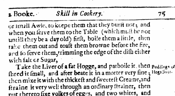 [5] This recipe is from the 1633 edition: Markham, G. (1633). Country Contentments, or The English Huswife. J. Harison.