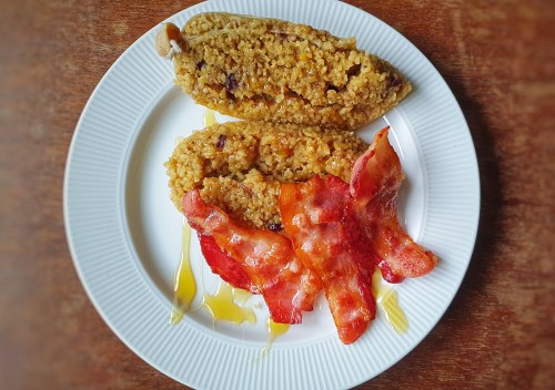 I have to say, they were a triumph! They freeze well and are easy to reheat. When it comes to serving them, let them cool for 5 minutes before cutting into them. The best way I have discovered to eat them (so far) is with crispy smoked bacon and golden syrup. Breakfast of champions.